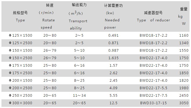 雙管螺(luó)旋喂料(liao)機主要(yao)技術參(cān)數: