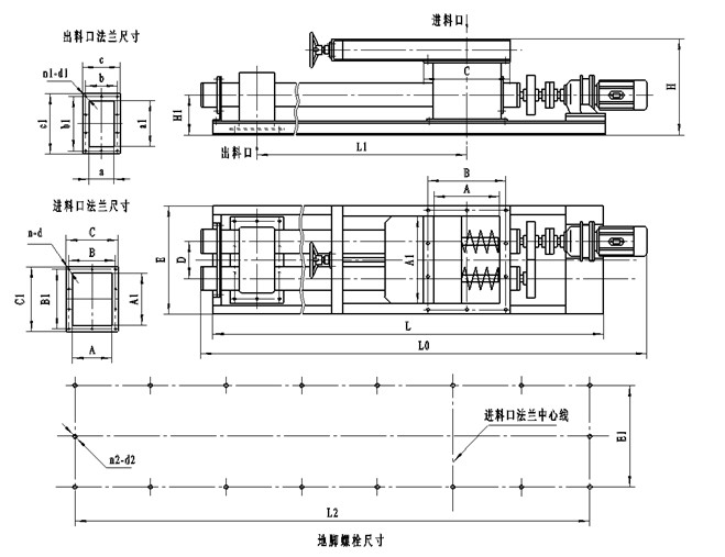 進出料(liào)口中心(xin)距 mm Center interval of inlet and outlet