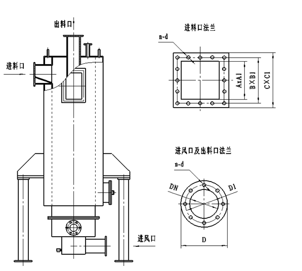 Air inlet and material outlet flange dimension:
